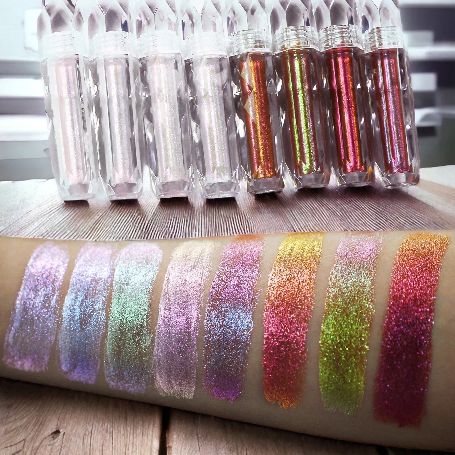 - Layer the Liquid Shimmer on top of eyeshadows, highlighters, and lipsticks or use on its own